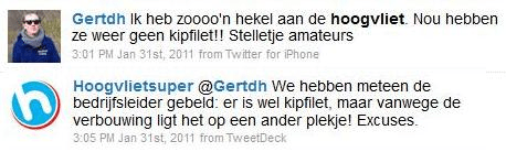 <!–[if !supportLists]–>– <!–[endif]–>Dit jaar reageren op 50% van de tweets die over ons bedrijf gaan