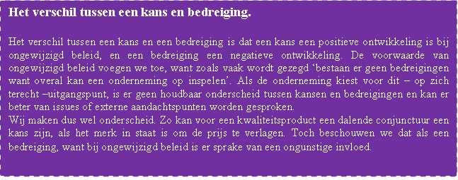 Voor de duidelijkheid worden de begrippen kansen en bedreigingen nog even duidelijk gedefinieerd.