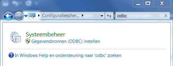 Tik “odbc” in het zoekvenster in van het Configuratiescherm (snelste manier).