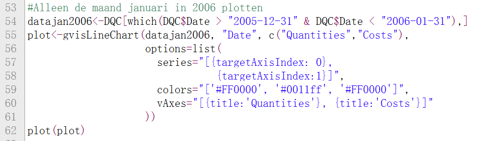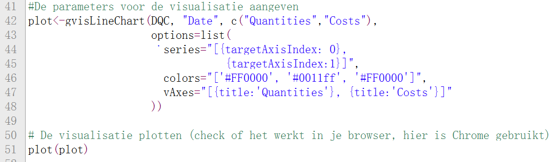 (als je de packages nog niet geinstalleerd hebt, gebruik “install.packages(‘RODBC’) ” en ” install.packages(‘googleVis’) “.