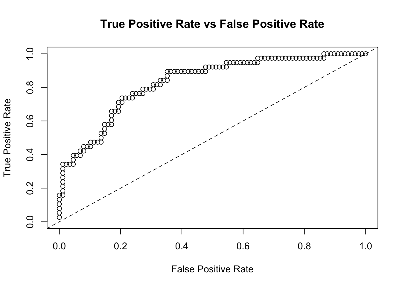 Laten we voor dit classificatiemodel die we getraind hebben ook een ROC curve zien.
